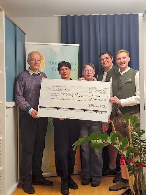 Am 24. November 2025 freuten sich Vertreter der Hospizgruppe über einen symbolischen Scheck in Höhe von 1.000 € des Kath. Burschenvereins Allershausen zugunsten des Projektes der "Leeren Wiege".